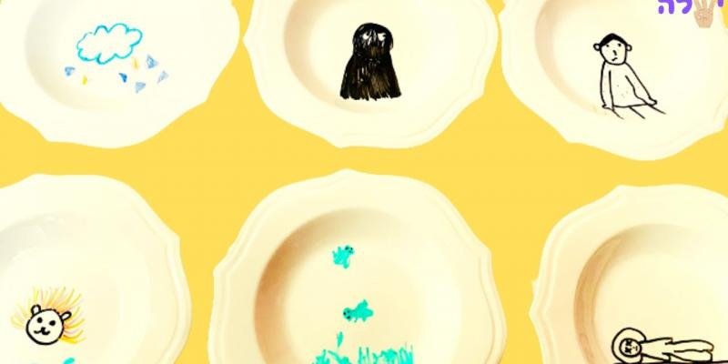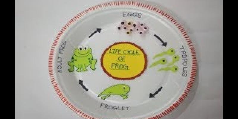 יצירה בצלחת המציגה את מחזור חיי הצפרדע
